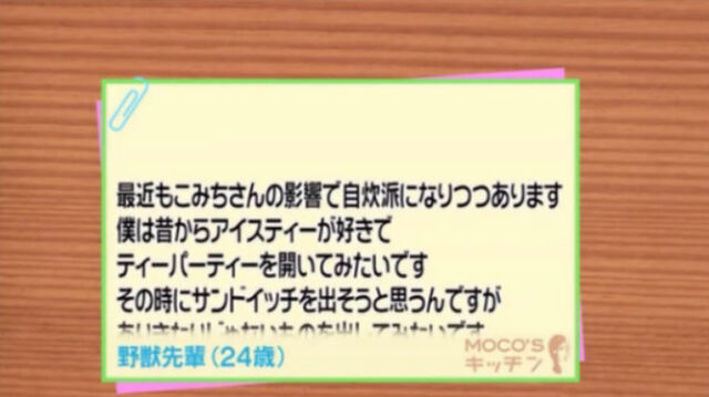 Moco Sキッチンで野獣先輩 24歳 がリクを送った件についてのホモ達の反応まとめ Togetter