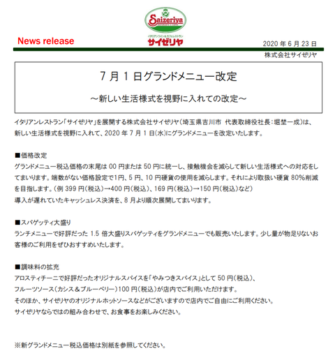 サイゼリヤ 全て値上げと思ったら一部値下げの価格改定に加えてキャッシュレス決済導入 市況かぶ全力2階建 ニュートピ Twitterで話題のニュースをお届け