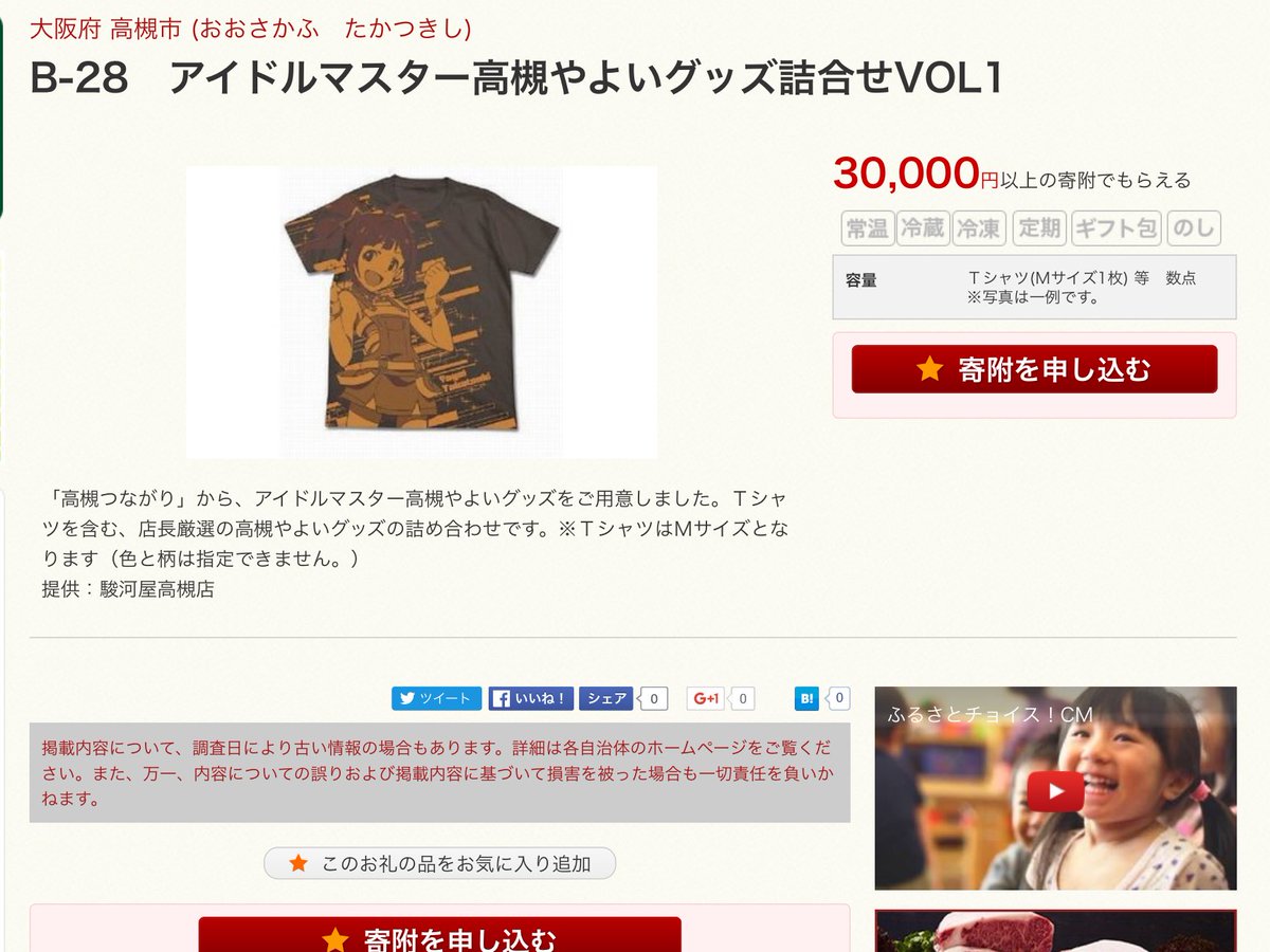 ふるさと納税7年連続0円 の高槻市が起死回生の策 アイドルマスター高槻やよいグッズ詰合せ Togetter