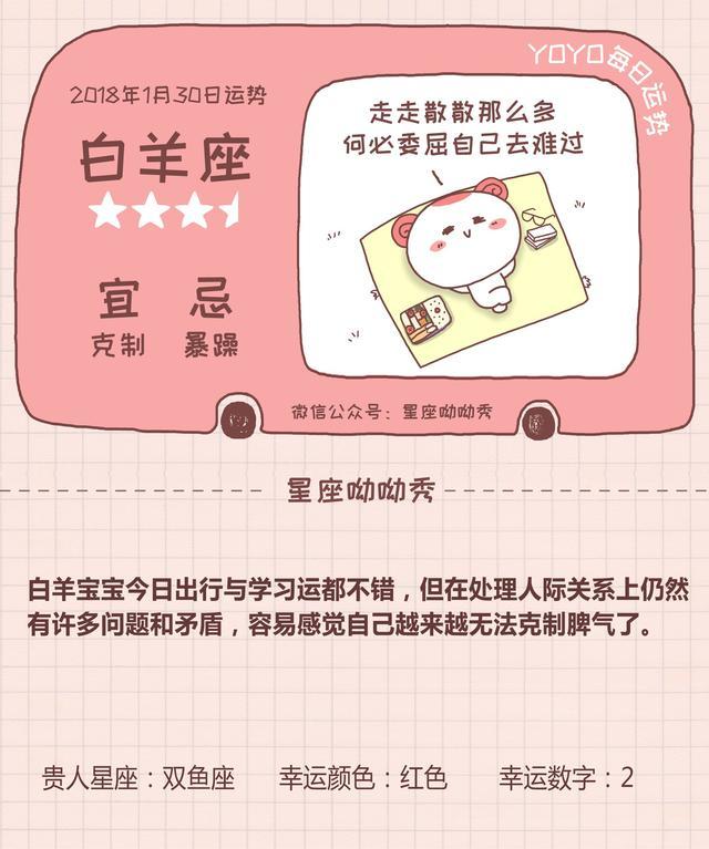1 月30 日星座运势 好运
