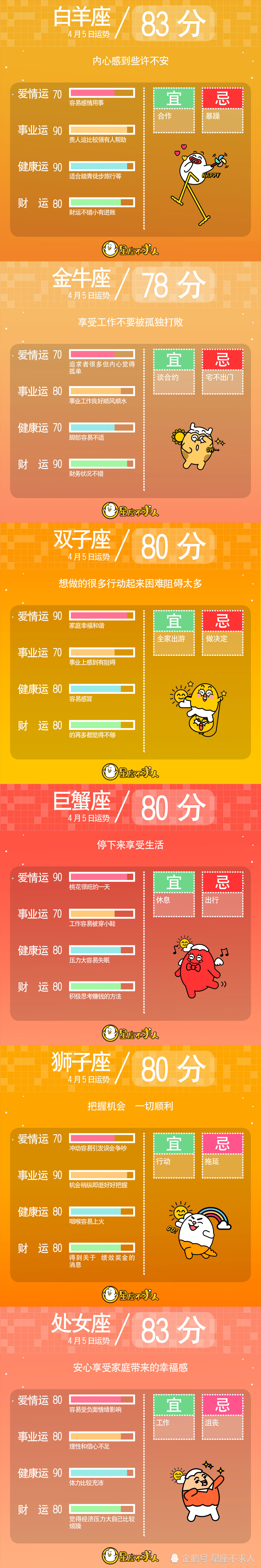 4月5日星座运势 巨蟹处女心情放松 腾讯新闻