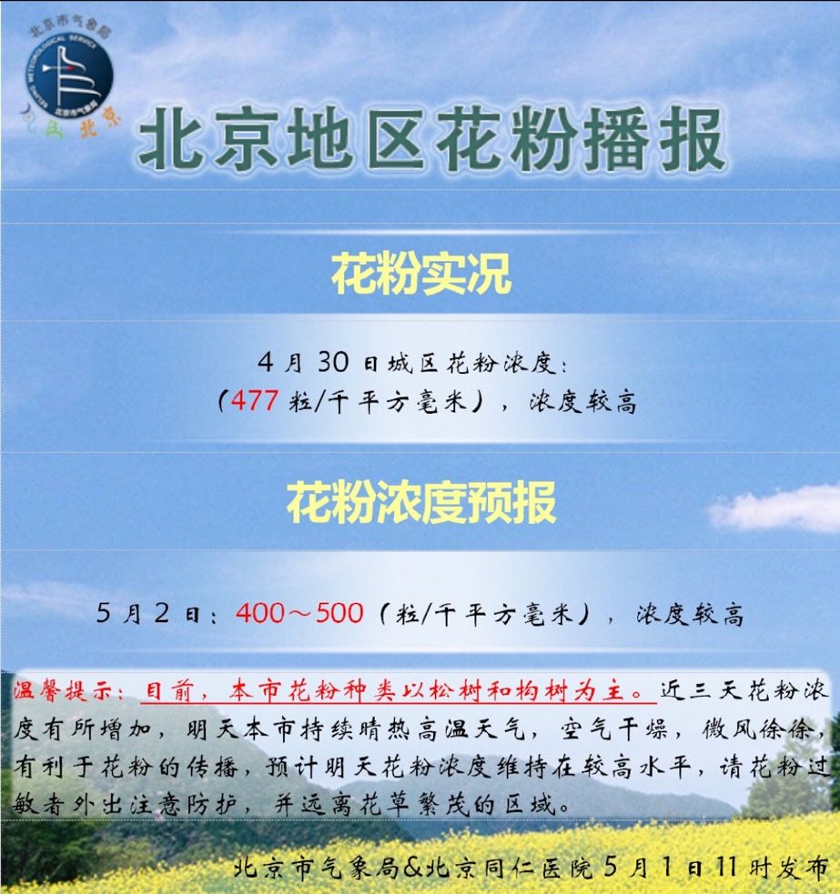 花粉浓度极高 记得投出您的一票 预报