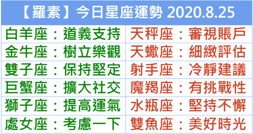 羅素 今日星座運勢2020 8 25 小鐵星座